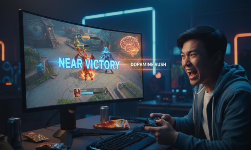 Bạn đã bao giờ cảm thấy tim mình đập nhanh hơn chỉ vì “suýt nữa thôi là thắng”? Trong thế giới game online, khoảnh khắc “gần thắng” là một trong những hiện tượng tâm lý thú vị nhất. Dù kết quả cuối cùng là thua, cảm giác “suýt thắng” lại kích hoạt phần thưởng trong não tương tự như khi ta thật sự chiến thắng.