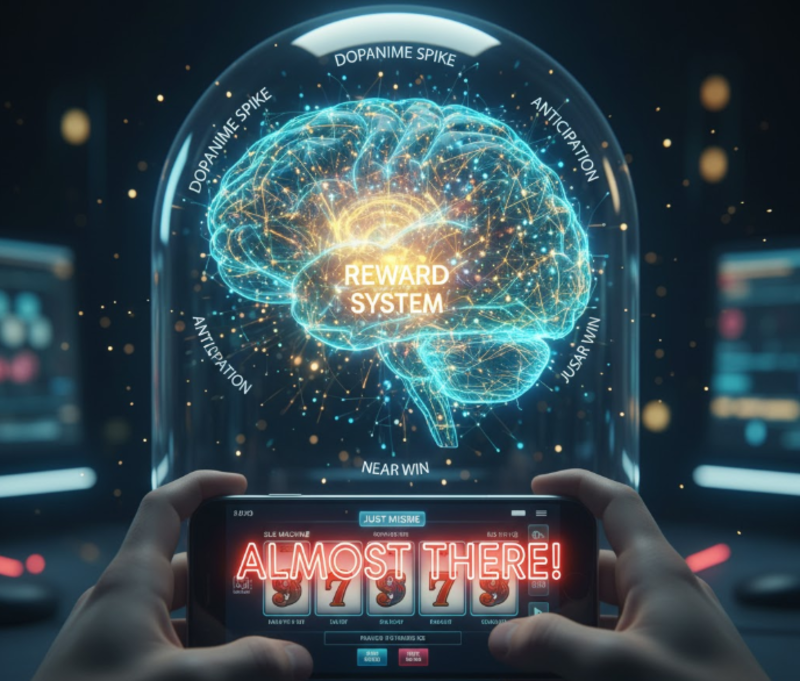Điều thú vị là dopamine ngoài xuất hiện khi ta thắng, mà còn mạnh mẽ nhất trong giai đoạn chờ đợi hoặc “gần thắng”. Đây chính là lý do vì sao người chơi thường muốn “thử lại lần nữa”, vì não họ đang “nghiện” cảm giác hưng phấn do dopamine mang lại, chứ không đơn thuần là khao khát chiến thắng.