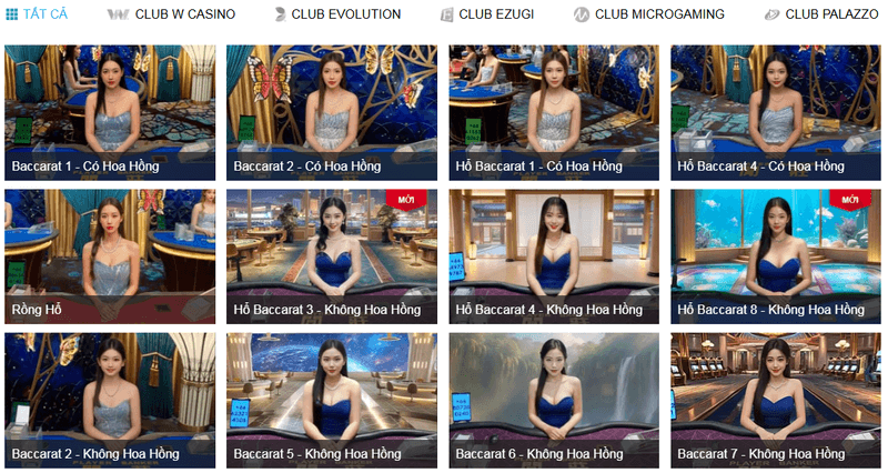 - Các trò chơi: Baccarat, Sicbo, Roulette, Rồng Hổ.