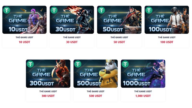 Thành viên truy cập trực tiếp vào trang mua thẻ game W88 chính thức: muathegame.biz. Giao diện sẽ hiển thị nhiều loại thẻ game với các mệnh giá linh hoạt, từ 10 USDT đến 1000 USDT.