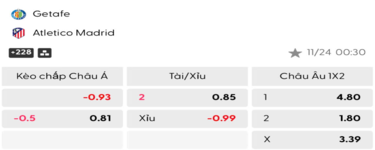 Atletico Madrid bước vào chuyến làm khách trên sân Getafe với tâm thế của đội cửa trên. Sự ổn định trong lối chơi cùng chiều sâu đội hình vượt trội giúp họ được đánh giá cao hơn trong cuộc đối đầu lần này. Getafe luôn nổi tiếng là đối thủ khó chịu, nhưng hàng công thiếu đột biến của đội chủ nhà có thể khiến họ gặp nhiều bế tắc trước hàng thủ thép của Atletico. Một chiến thắng tối thiểu cho thầy trò HLV Diego Simeone là kịch bản không quá bất ngờ.
