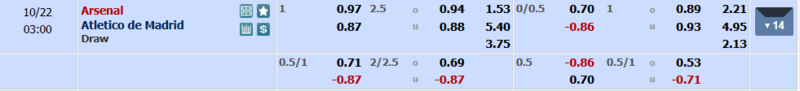 Soi kèo trận đấu giữa Arsenal Vs Atletico Madrid