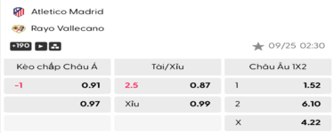 Soi kèo trận đấu giữa Atletico Madrid Vs Rayo Vallecano