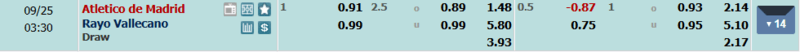 - Tỷ lệ soi kèo Châu Á: chọn Atletico Madrid thắng.