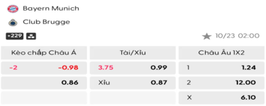 Soi kèo trận đấu giữa Bayern Munich Vs Club Brugge