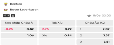 Soi kèo trận đấu giữa Benfica Vs Leverkusen