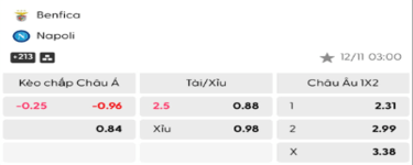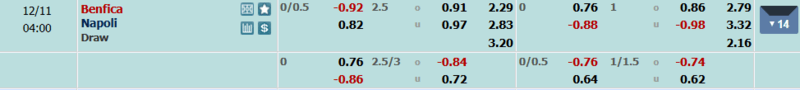 • Soi kèo trận đấu giữa Benfica Vs Napoli
