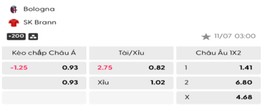 Soi kèo trận đấu giữa Bologna Vs Brann