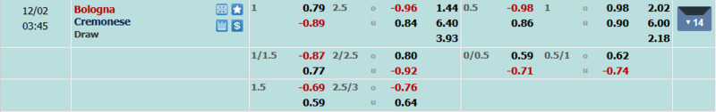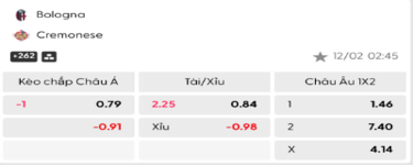 - Tỷ lệ soi kèo Châu Á: chọn Bologna thắng.