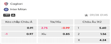 Soi kèo trận đấu giữa Cagliari Vs Inter Milan