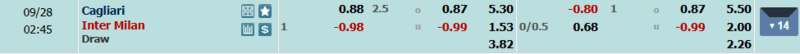 - Dự đoán tỉ số trận đấu: Cagliari 1-3 Inter Milan.