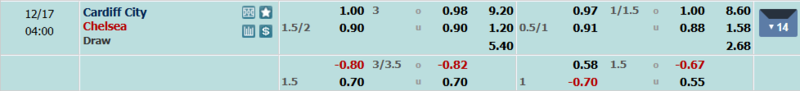 Soi kèo trận đấu giữa Cardiff City Vs Chelsea