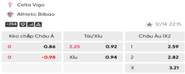 Soi kèo trận đấu giữa Celta Vigo Vs Athletic Bilbao