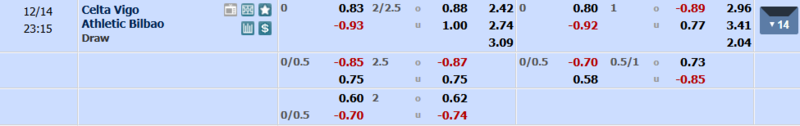 - Tỷ lệ soi kèo Châu Á: chọn Celta Vigo thắng.