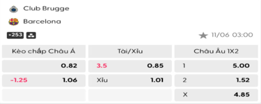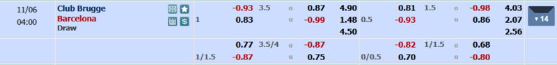 Soi kèo trận đấu giữa Club Brugge Vs Barcelona