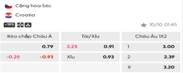 Soi kèo trận đấu giữa Cộng Hòa Séc Vs Croatia