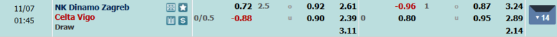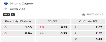 - Dự đoán tỉ số trận đấu: Dinamo Zagreb 1-0 Celta Vigo.
