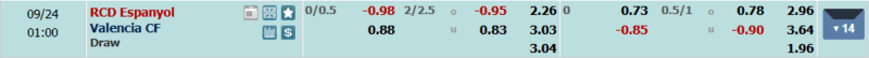 Soi kèo trận đấu giữa Espanyol Vs Valencia