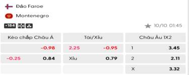 Soi kèo trận đấu giữa Faroe Islands Vs Montenegro