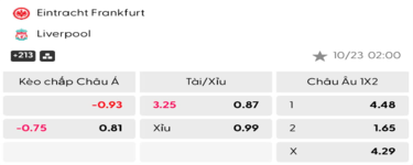 Soi kèo trận đấu giữa Frankfurt Vs Liverpool
