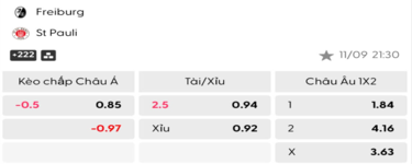 Soi kèo trận đấu giữa Freiburg Vs St. Pauli