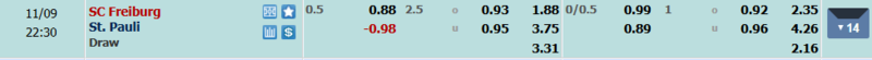Dự đoán tỉ số trận cầu giữa Freiburg Vs St. Pauli