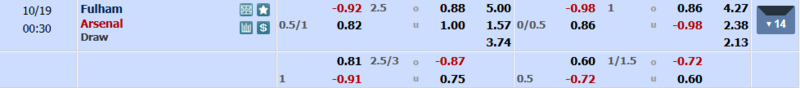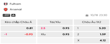 Soi kèo trận đấu giữa Fulham Vs Arsenal