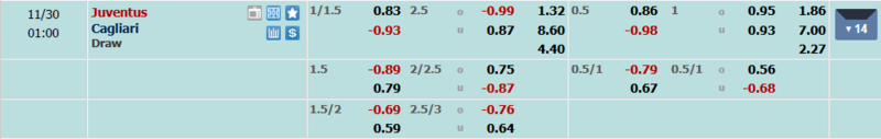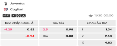 Soi kèo trận đấu giữa Juventus Vs Cagliari