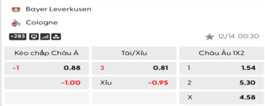 • Tỷ lệ soi kèo Châu Á: chọn Leverkusen thắng.