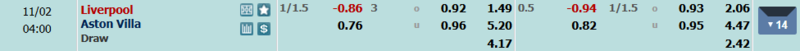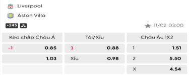 Soi kèo trận đấu giữa Liverpool Vs Aston Villa