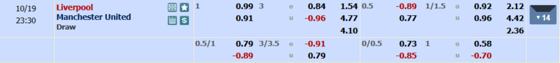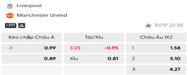 Soi kèo trận đấu giữa Liverpool Vs Man United