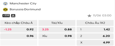 Soi kèo trận đấu giữa Man City Vs Dortmund