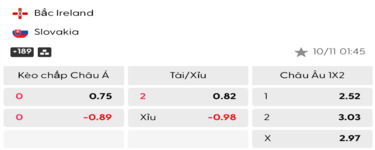 • Tỷ lệ soi kèo Châu Á: chọn Slovakia thắng.