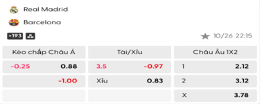 Soi kèo trận đấu giữa Real Madrid Vs Barcelona