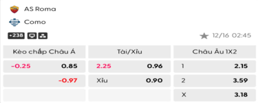 Soi kèo Roma Vs Como 02:45, Thứ Ba, 16/12/25 – Giải Serie A