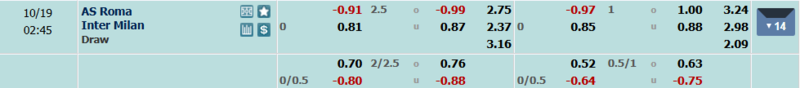 Soi kèo trận đấu giữa Roma Vs Inter Milan