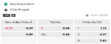Soi kèo trận đấu giữa Sporting Lisbon Vs Club Brugge