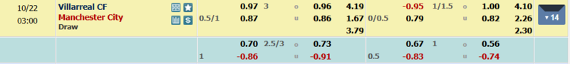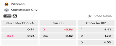 Soi kèo trận đấu giữa Villarreal Vs Man City